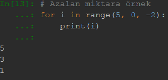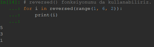 “range()” fonksiyonunda, varsayılan başlangıç değeri 0 ve varsayılan adım büyüklüğü değeri de 1’dir. Başlangıç değeri ve adım büyüklüğü girilmezse varsayılan değerler alınacaktır.